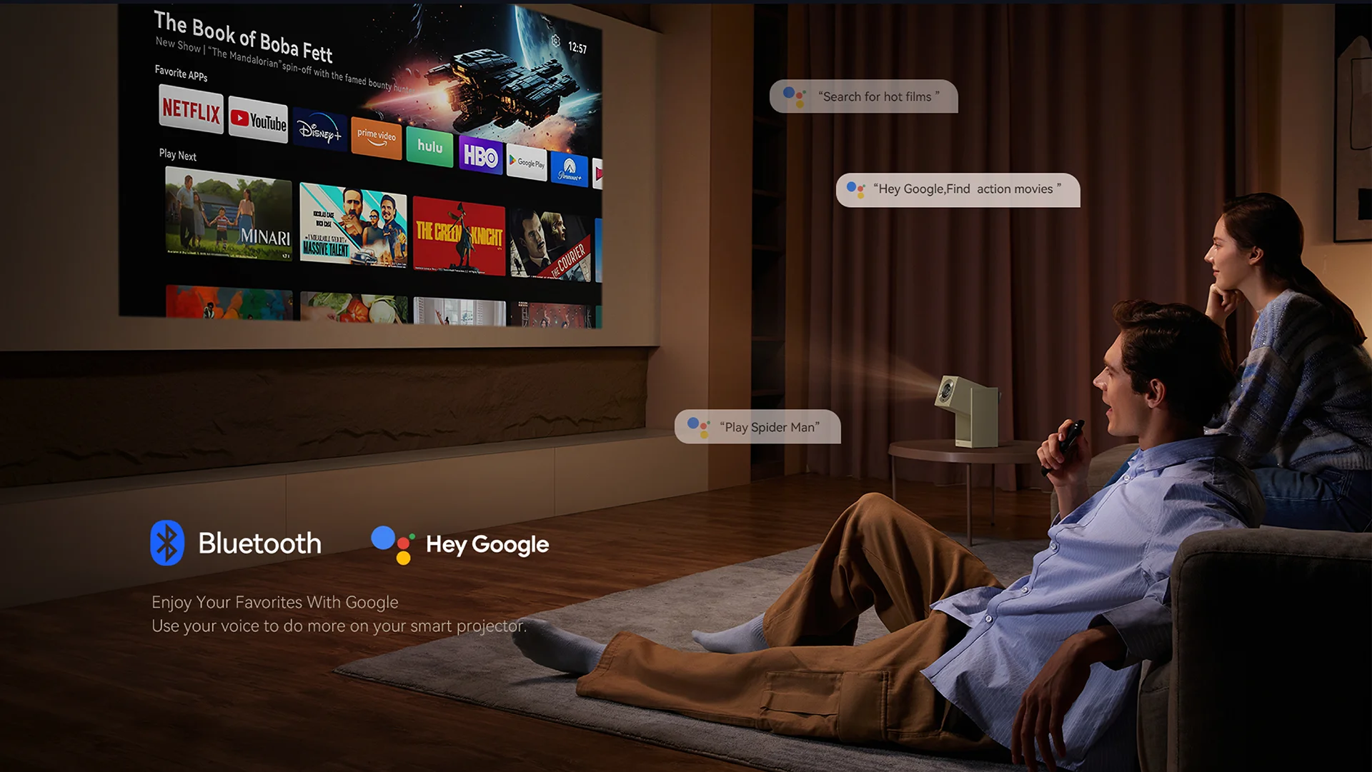 Projecteur Full HD Android TV, Autofocus Intelligent